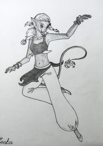 Почти сразу, как девушка договорила, за спиной Та'Кари из портала вынырнула его спутница: невысокая, покрытая светло-серой короткой шерстью совсем юная тенелин, ноги которой были больше похожи на задние лапы животного. Одета она была схожим с Та'Кари образом, только штаны были заметно короче, а под жилетом девушка носила короткую майку. Серые волосы девушки были собраны в высокий хвост, только по сторонам от лица свисали две длинные пряди, унизанные бусинами, в отличии от своего старшего товарища, других украшений девушка не носила.